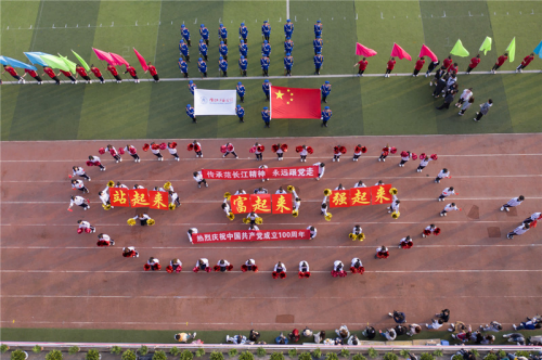 整齐的步伐踏着他们的坚定,灿烂的微笑彰显他们的热情。在主席台前,公司代表方队用纸板和横幅摆出了“站起来、富起来、强起来”的字样,在中国共产党成立100周年之际,这既代表着我国已经实现“站起来”,正往“富起来”发展,最终实现“强起来”的目标,也代表着公司永远追随党的步伐,不忘初心,牢记使命。在整齐的站队中拿撒花和举字板的同学错落有致,展现出了一副靓丽的景象。